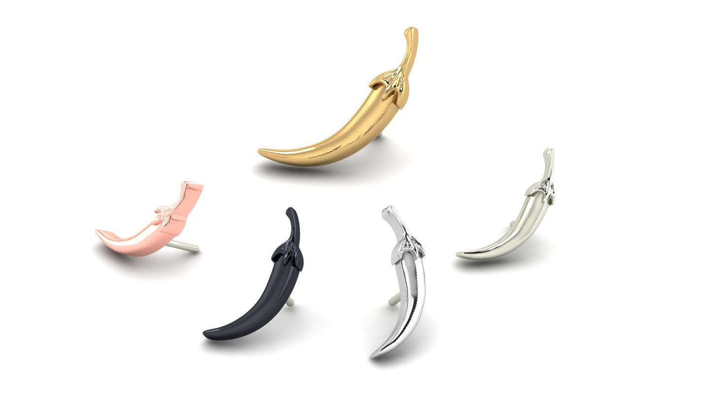 The Chilli End is a playful yet striking design inspired by the fiery spirit of the chili pepper. Known for its bold color and intense heat, the chili symbolizes passion, energy, and boldness. This unique piece captures that essence, adding a spicy twist to your body jewelry collection.