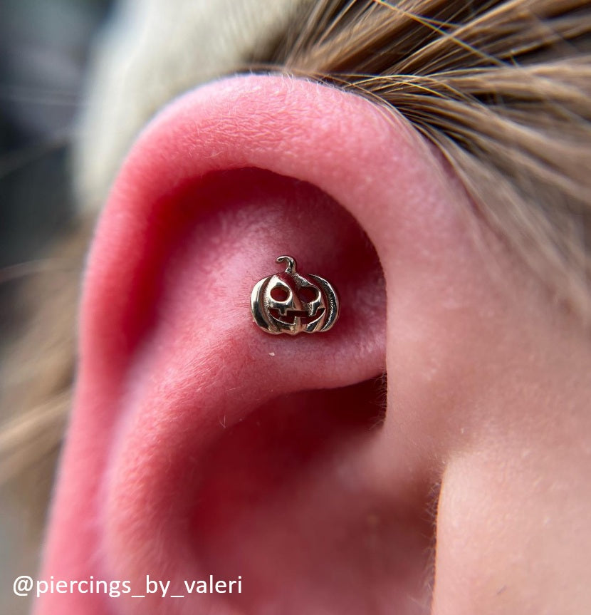 A small decorative end featuring a carved pumpkin face, reflecting old autumn traditions where gourds were used to create protective symbols. The familiar round eyes and sharp smile reference a long-standing cultural motif tied to seasonal change and folklore.