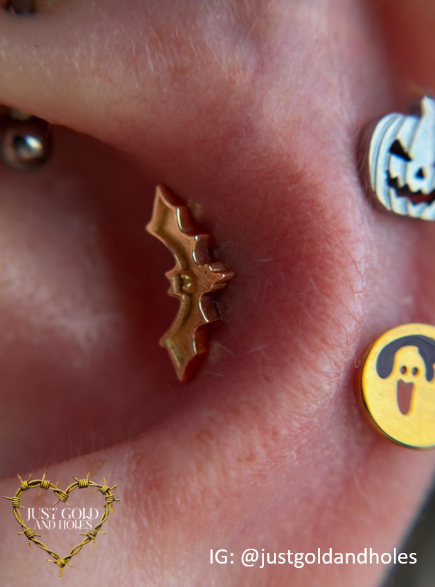 El Bat End es un diseño impactante inspirado en la naturaleza misteriosa y enigmática de los murciélagos. Conocidos por su asociación con la noche, la oscuridad y la transformación, los murciélagos son poderosos símbolos de renacimiento e intuición. Esta detallada pieza de inspiración gótica captura la esencia de las alas y el vuelo del murciélago, convirtiéndola en una adición única a cualquier colección de joyería corporal.